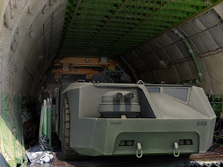 Vehículo blindado de la película Aliens Return. Me gusto este blindado cuando vi la película y decidí hacerlo. Hay una imagen simulando un estudio fotográfico y dos integradas en fotografías, una en un portaaviones y otra en la bodega de un avión de transporte.